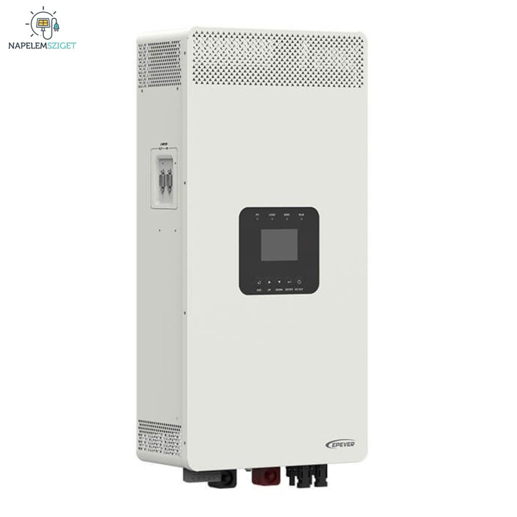 Az EPEVER HP5542 egy 6kW-os hibrid szigetüzemű rendszer — elegendő teljesítmény egy teljes háztartás ellátásához. Hűtő, mosógép, klíma, bojler egyszerre futhat róla. A hibrid inverternek köszönhetően hálózatról és napból egyszerre tölthet, télen sem marad áram nélkül.